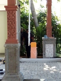 Foto pemasangan Portal elektrik atau barrier gate di Nusa dua Bali menggunakan Barrier gate type MX50 Original (Full orange)