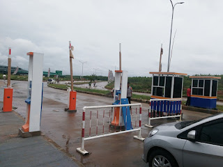 Barrier gate/ portal akan secara otomatis terbuka . Kendaraan dapat masuk dan