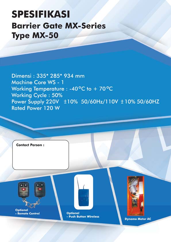 Spesifikasi barrier gate dengan type MSM MX-50 :