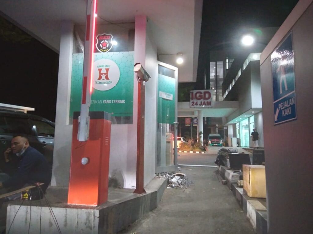 Fauzy sedang mengerjakan tahap pemasangan barrier gate dan Push Button