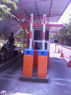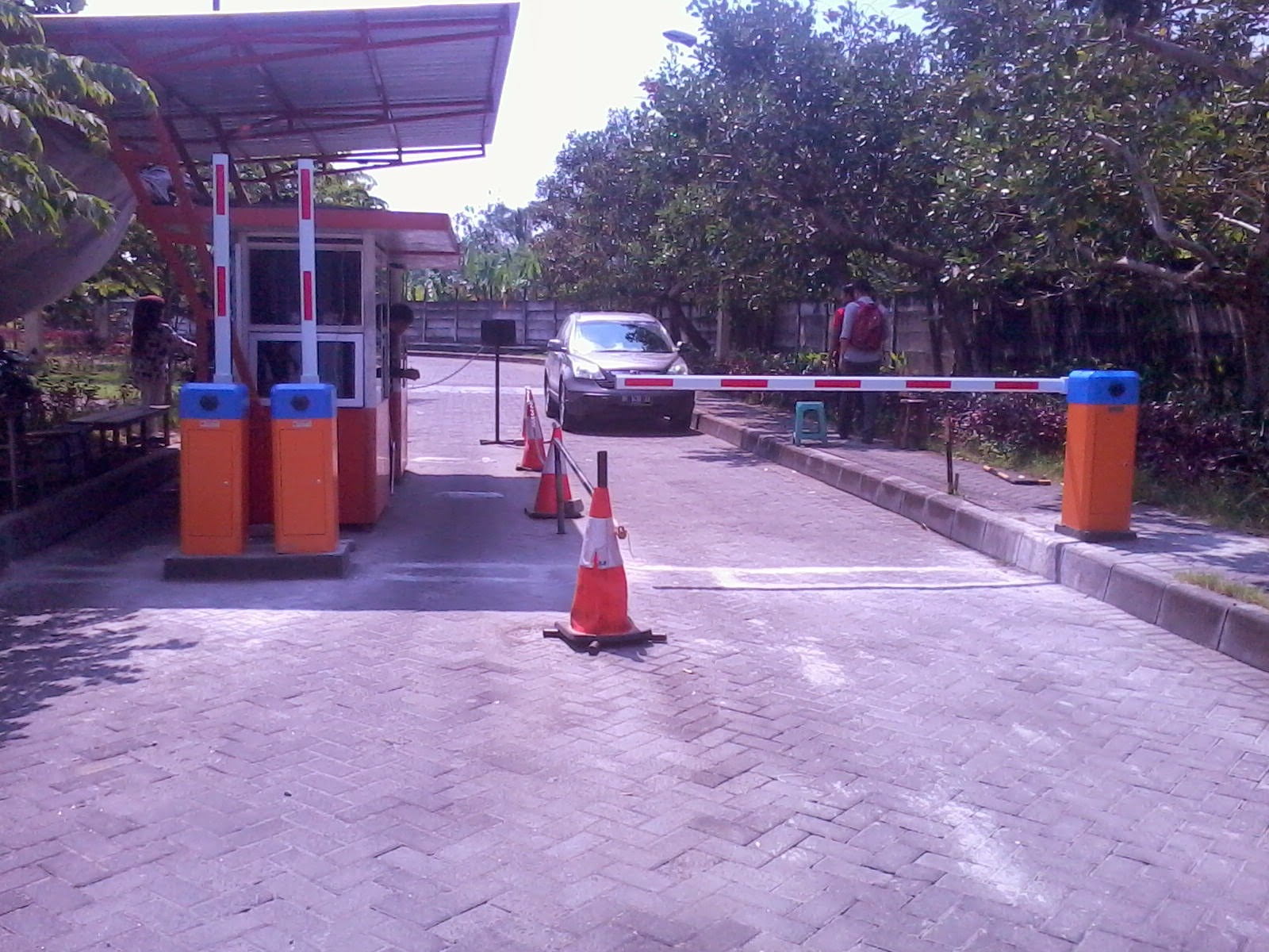 Pemasangan Alat Pakir,palang parkir IBG Inteligent Barrier Gate 1 detik di Kampus UMY,Yogyakarta,sistem yang diaplikasikan adalah sistem parkir RFID Online