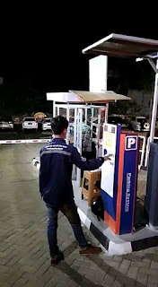 mengeluarkan karcis parkir dan palang parkir barrier gate akan terbuka.